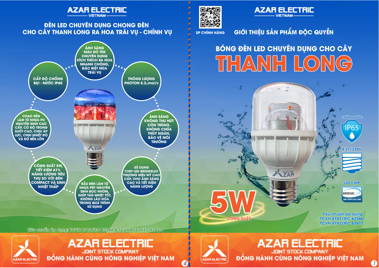 Thanh long, một loài cây quen thuộc với người dân Việt Nam, đặc biệt sinh trưởng mạnh mẽ tại các vùng đất như Bình Thuận và Tiền Giang, thuộc họ xương rồng và có chu kỳ phát triển kéo dài. Để khám phá những khả năng tối ưu trong phát triển của loài cây này, cũng như để đạt được năng suất tối đa, việc cung cấp ánh sáng trong thời gian đêm đã trở thành một mô hình nghiên cứu tại góc nhìn khoa học. Hiện tượng này đã thúc đẩy quá trình phát triển và thử nghiệm đèn LED với mục đích tạo ra ánh sáng mang tính đặc thù cho cây thanh long. Sắc tố Phytochrome: Hàm lượng sắc tố Phytochrome FarRed đang trở thành yếu tố quyết định trong cơ chế ra hoa của cây ngày ngắn và cây ngày dài. Tại đây, cây sẽ thụ động ánh sáng đỏ Red với bước sóng 660nm để chuyển đổi sắc tố Pr thành Pfr và ngược lại, ánh sáng FarRed với bước sóng 730nm sẽ kích thích quá trình chuyển đổi Pfr thành Pr. Như vậy, việc tạo ra một chuỗi ánh sáng xen kẽ giữa đỏ Red 660nm và đỏ xa FarRed 730nm có thể được áp dụng để tác động kích thích hoặc ức chế quá trình ra hoa của cây ngày ngắn và cây ngày dài. Trong trường hợp của cây thanh long, một loại cây ngày dài, sự tích tụ đủ lượng sắc tố Pfr trong suốt chu kỳ ngày/đêm là cần thiết để khởi đầu quá trình ra hoa. Để đáp ứng điều này, một chiến lược ánh sáng nhân tạo đã được đề xuất, sử dụng ánh sáng đỏ 660nm và ánh sáng đỏ xa 730nm để tạo ra môi trường ánh sáng giúp cây thanh long có thể tăng cường tỷ lệ Pfr trong môi trường ánh sáng ban đêm, từ đó thúc đẩy tiến trình ra hoa. Đèn LED được phát triển cho thanh long không chỉ đại diện cho sự tiến bộ trong việc cung cấp nguồn ánh sáng cho cây trồng, mà còn mang trong mình những tri thức và khả năng khoa học đa chiều. Được chế tạo với các chip LED dẫn đến phát quang trong khoảng hai bước sóng cụ thể (600nm và 730nm), đèn LED này đã trải qua quá trình nghiên cứu kỹ lưỡng nhằm tối ưu hóa khả năng chiếu sáng với mục tiêu tạo điều kiện lý tưởng để cây thanh long tiếp thu đủ lượng Pfr - một dạng của pigment Fitochrom trong môi trường ánh sáng đêm - để khởi đầu quá trình ra hoa. Thêm vào đó, ánh sáng từ đèn LED đã kích thích sự sinh trưởng nhanh chóng và mang cây thanh long tới giai đoạn phát triển quan trọng - giai đoạn ra hoa. So với thời kỳ quá khứ, khi nguồn sáng chủ yếu đến từ các bóng đèn thông thường phát ra ánh sáng trắng, với một dãy quang phổ đa dạng, sự ra đời của đèn LED cho thanh long đã thay đổi diện mạo của ngành nghiên cứu và ứng dụng ánh sáng cho cây trồng. Bằng cách tập trung vào hai bước sóng quan trọng nhất cho quá trình sinh trưởng của cây, đèn LED này đã khắc phục những hạn chế trước đây và góp phần tối ưu hóa năng suất cho cây thanh long. Điều này đã giúp Công ty Cổ phần Azar Electric vươn lên làm chủ được công nghệ, với thành công trong việc nghiên cứu, chế tạo và thử nghiệm đèn LED đã đạt được tiêu chuẩn ánh sáng cần thiết cho quá trình phát triển hoa - quả của cây thanh long; giúp tối ưu hóa quá trình phát triển và năng suất của cây trong môi trường ánh sáng đêm; giúp tiết kiệm năng lượng, chi phí đầu tư và từ đó khám phá ra tiềm năng hoa quả tối đa cho nền nông nghiệp đất nước.